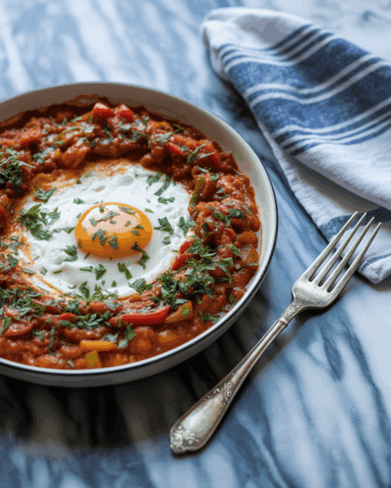 This dish is best served fresh, but leftovers can be stored in the fridge for up to 2 days. Reheat gently in a skillet. For a vegan version, omit eggs and serve with sautéed chickpeas or tofu. Pair your shakshuka with a slice of whole-grain sourdough or gluten-free pita, a fresh side salad, and a cup of green tea or black coffee for a balanced, nourishing start to your day.