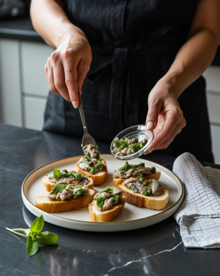 If you’re looking for a quick and healthy Mediterranean appetizer, this Sardine Bruschetta with Herbs, Red Onion, and Capers is your new go-to! Made with omega-3-rich sardines, zesty lemon, aromatic herbs, and briny capers, it’s a bold yet balanced dish perfect for brunch, parties, or even a light lunch.